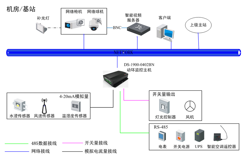 •支持RS-485接入外部設(shè)備,包括:UPS、電量表、開關(guān)電源、有毒氣體探測器、空調(diào)控制器、溫濕度傳感器、變壓器溫顯表等;