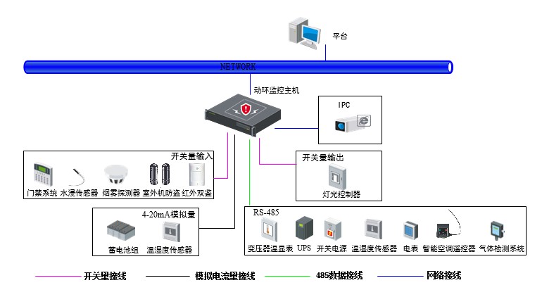 ●最新的485協(xié)議動態(tài)庫,業(yè)界領(lǐng)先。設備接入方式支持:UPS、開關(guān)電源、交流電表、溫度濕度傳感器、氣體檢測系統(tǒng)、空調(diào)控制器、變壓器溫顯表、蓄電池組、門禁控制器、熱交換設備、位置服務模塊、發(fā)電機組、低壓配電設備、新能源供電系統(tǒng)、鐵塔UPS設備、直流電表、分路計量設備、鍵盤。