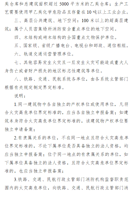凡是符合消防安全重點(diǎn)單位界定標(biāo)準(zhǔn)的機(jī)關(guān)、團(tuán)體、企業(yè)、事業(yè)單位,以及符合企業(yè)登記標(biāo)準(zhǔn)且經(jīng)營(yíng)規(guī)模符合消防安全重點(diǎn)單位界定標(biāo)準(zhǔn)的個(gè)體工商戶,均應(yīng)主動(dòng)申報(bào)。如單位符合界定標(biāo)準(zhǔn)未申報(bào),發(fā)生嚴(yán)重后果的,將依法追究單位法律責(zé)任。