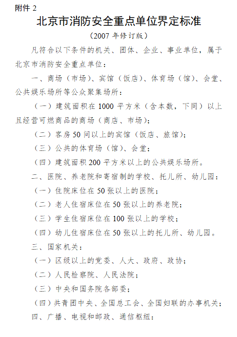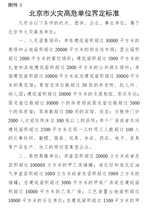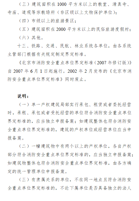 當(dāng)前位置: 主頁(yè) > 新聞中心 > 行業(yè)動(dòng)態(tài) >為進(jìn)一步加強(qiáng)消防安全重點(diǎn)單位及火災(zāi)高危單位管理,有效預(yù)防和減少火災(zāi)事故發(fā)生,依據(jù)《中華人民共和國(guó)消防法》《機(jī)關(guān)、團(tuán)體、企業(yè)、事業(yè)單位消防安全管理規(guī)定》《北京市消防安全重點(diǎn)單位界定標(biāo)準(zhǔn)》《北京市火災(zāi)高危單位消防安全管理規(guī)定》等法律規(guī)定,現(xiàn)啟動(dòng)2023年度消防安全重點(diǎn)單位及火災(zāi)高危單位調(diào)整界定工作,請(qǐng)各單位參考界定標(biāo)準(zhǔn)認(rèn)真自評(píng)申報(bào),并按照現(xiàn)行消防法律法規(guī)要求,進(jìn)一步強(qiáng)化消防安全主體責(zé)任。有關(guān)事項(xiàng)通告如下: